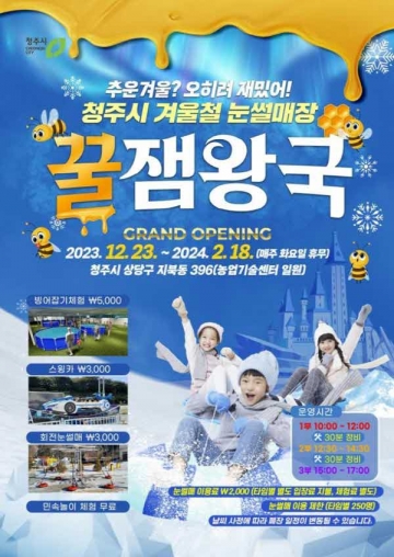 청주시는 농업기술센터 일원(상당구 지북동 396번지)에 온 가족이 즐길 수 있는 눈썰매장을 조성하고 오는 23일 개장한다고 밝혔다.
