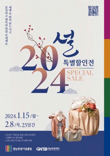 경상남도와 경남관광재단이 운영하는 경남관광기념품점(이하 기념품점)은 올해 설을 맞이하여 오는 15일부터 다음 달 8일까지 특별 할인행사를 진행한다고 밝혔다.