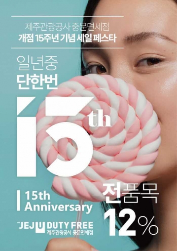 제주관광공사(사장 고승철)가 중문면세점 개점 15주년을 기념해 이용객들에게 특별한 할인 혜택을 제공한다.