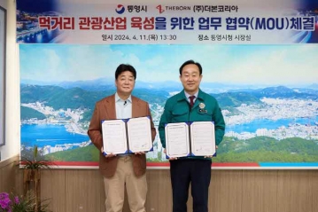 통영시와 ㈜더본코리아는 지난 11일 통영시청에서 먹거리 관광산업 육성을 위한 업무협약을 체결했다.