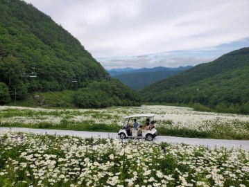 먼저 따뜻한 봄을 맞아 전동카트를 타면서 스키장 슬로프에 핀 야생화를 감상하는 ‘하늘길 카트투어’는 이용객이 직접 운전하는 프로그램으로, 계절과 해발고도에 따라 다양한 야생화를 즐길 수 있다.