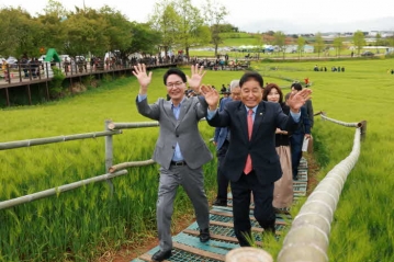 공음면 어울림 난타 오프닝 공연과 함께 고창이 자랑하는 보리로 만든 보리떡케이크 커팅식으로 기념식을 진행 후 식후 행사로 군민들과 함께 보리밭 사잇길을 걸었다.