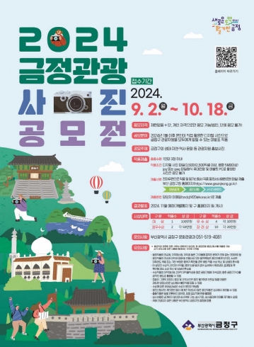 부산시 금정구(구청장 김재윤)는 금정구의 새로운 매력을 발굴하고 다채로운 금정구의 관광자원을 홍보하기 위해 ‘2024 금정 관광 사진 공모전’을 개최한다고 밝혔다.