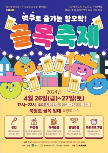 경주시가 북정로 골목 일대에서 오는 26일부터 27일까지 원도심 지역 관광 및 상권 활성화를 촉진하기 위해 ‘골목축제-맥주로 즐기는 황오락’을 개최한다.