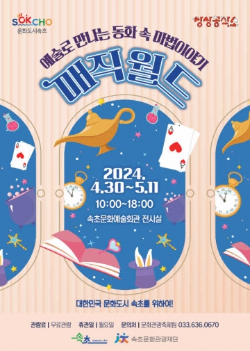 (재)속초문화관광재단은 오는 30일(화)부터 5월 11일(토)까지 12일간 속초문화예술회관 전시실에서 가정의 달을 맞이하여 속초문화관광재단 기획전시‘매직월드’를 개최한다.