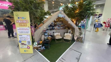 시는 단독 홍보 공간에서 캠핑 놀이터, 레고 놀이터, 막걸리 놀이터 등의 구성을 통한 춘천의 맛과 함께 재미를 느낄 수 있는 공간으로 꾸몄다.