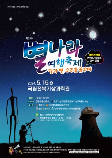 시는 오는 15일 오전 10시부터 오후 10시까지 상평동 소재 국립전북기상과학관에서 ‘제24회 별나라 여행축제’가 열린다고 13일 전했다.