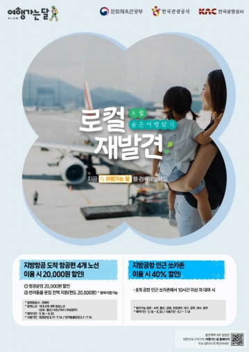 한국공항공사(사장직무대행 이정기)는 '6월 여행가는 달'을 맞아 여름휴가를 미리 떠나는 여행객을 위해 국내선 항공권·반려동물 운임·카셰어링(자동차 공유 서비스) 할인 프로모션을 실시한다.