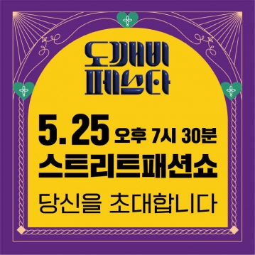 매주 풍성한 볼거리와 놀거리로 원주시민들이 오감을 만족시키며 뜨거운 호응을 얻고 있는 이번 페스타에 오는 25일(토) 오후 7시 30분‘시민과 함께하는 스트리트 패션소’가 열린다.