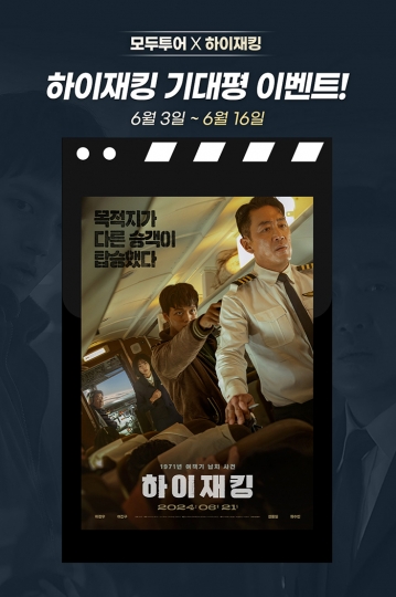 이번 기대평 이벤트는 모두투어 회원을 대상으로 오는 16일까지 진행하며 참여 방법은 간단하다. 모두투어 홈페이지 이벤트 기획전 페이지에서 <하이재킹> 예고편을 감상하고 하단에 기대평을 남기면 자동으로 응모된다. 추첨을 통해 <하이재킹> 영화예매권을 100명에게 2매씩, 총 200매 증정한다. 당첨자 발표는 오는 18일 모두투어 홈페이지를 통해 공개할 예정이다.