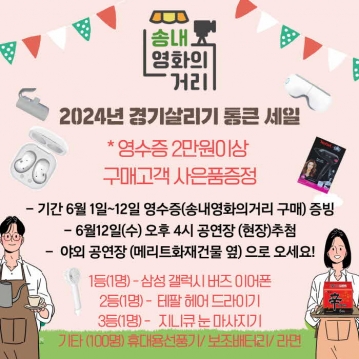 송내영화의거리의 상점들은 고객 감사 할인세일을 실시하며, 경품 행사는 6월 1일~6월 12일 중 2만원이상 구매고객(영수증지참)을 대상으로 6월 12일 오후 4시부터 6시 까지 공연행사장(메리트화재 건물 옆)에서 경품 추첨 행사에 참여할 수 있다. 12일 오후 2시~7시에는 고객들을 위한 프리마켓 행사가 준비돼 있다.