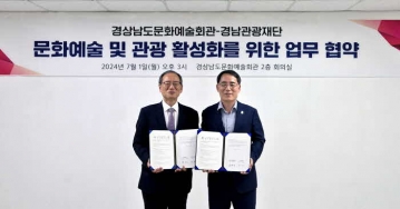 이번 협약식에는 김태열 경남문화예술회관 관장과 황희곤 경남관광재단 대표이사 등 관계자들이 참석해 문화예술 및 관광 활성화를 위한 상호교류에 앞장서고, 홍보‧마케팅을 공동 추진하기로 뜻을 모았다.