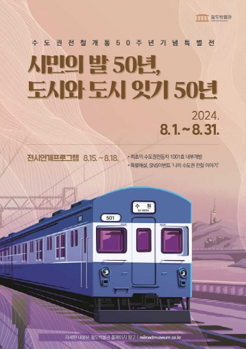 한국철도공사(코레일) 철도박물관이 수도권전철 개통 50주년을 맞아 8월 15일부터 31일까지 특별전을 개최한다고 밝혔다.