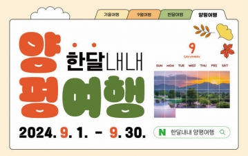 양평군(군수 전진선)은 오는 9월 한 달 동안 양평을 즐길 수 있는 <한달내내 양평여행> 행사를 개최한다고 밝혔다. 이번 행사는 2023년에 처음 시작되어 양평을 찾은 관광객들에게 소소한 즐길 거리와 여행 편의를 제공하며 큰 호응을 얻은 바 있다.
