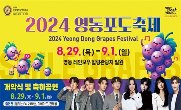 충북 영동군과 영동축제관광재단은 오는 8월 29일부터 9월 1일까지 영동 레인보우 힐링관광지 일원에서 제19회 '2024 영동포도축제'를 개최한다.