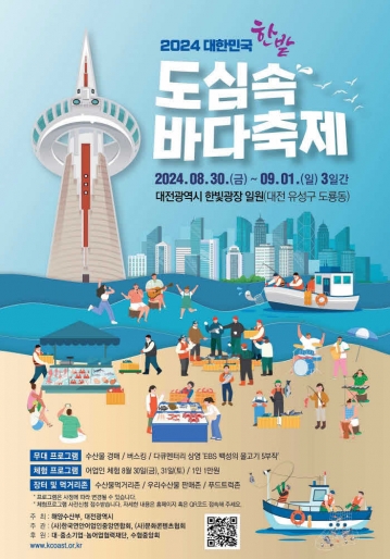 이번 '2024 대한민국 한밭 도심 속 바다축제'는 도심 한복판에서 바다의 풍성함과 즐거움을 경험할 수 있는 특별한 기회로, 시민들에게 신선한 수산물과 함께 다양한 즐길 거리를 제공할 예정이다.