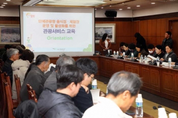 특히 친절 및 관광마인드 교육에서는 실제 사례를 바탕으로 한 고객 응대 교육이 진행됐으며, 이어진 위생 및 안전교육에서는 단체관광객 수용 시설의 특성을 고려한 맞춤형 위생․안전 관리 방안이 제시됐다.