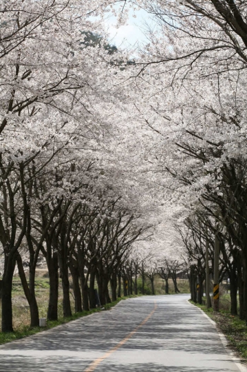 이곳은 1980년부터 심기 시작한 4,000여 그루의 왕벚나무가 5.5km에 걸쳐 ‘왕벚나무터널’을 이루며 장관을 연출하는 곳이다.