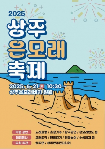 정점숙 상주면장은 “처음 열리는 축제인 만큼 예산은 크지 않지만, 주민과 방문객 모두가 만족할 수 있는 알차고 따뜻한 행사가 되도록 정성을 다해 준비했다”며 “상주은모래비치에서 가족, 친구, 이웃과 함께하는 소중한 여름의 추억을 꼭 만들어 가시길 바란다”고 말했다.