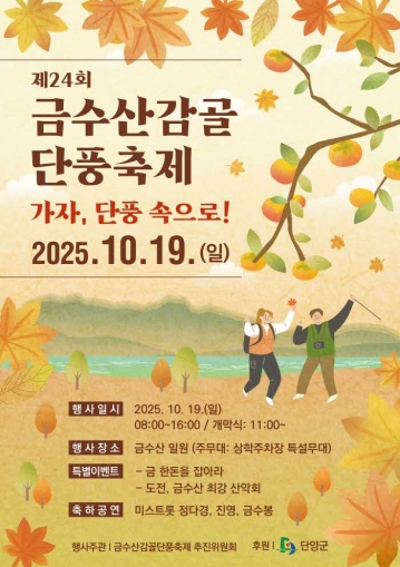 가을의 정취가 짙어가는 10월, 충북 단양의 명산 금수산이 단풍으로 물든다. 단양군 적성면 금수산 일원에서 열리는 ‘제24회 금수산감골단풍축제’가 오는 19일 상학주차장 일원에서 성대하게 막을 올린다.