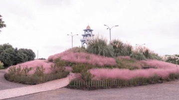 SNS에서 사진 명소로 유명한 허브동산 내 핑크뮬리 종탑은 여행하기 안성맞춤인 제주 날씨와 함께 몽환적인 분위기를 뽐내고 있다. 핑크뮬리 외에도 가을을 대표하는 꽃과 다양한 허브들로 정원이 가득 차 있다.