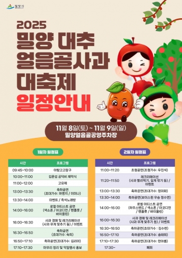밀양시 관계자는 “올해는 두 축제가 하나로 합쳐져 밀양을 대표하는 통합 축제로 새롭게 거듭나는 의미 있는 해”라며 “밀양의 대추와 얼음골사과가 선사하는 달콤한 가을 향연에 많은 시민과 관광객이 함께하길 바란다”고 전했다.