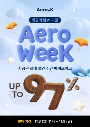 한편, 이번 에어로위크 관련 자세한 정보와 노선별 할인율은 에어로케이항공 공식 홈페이지(www.aerok.com)에서 확인할 수 있다.