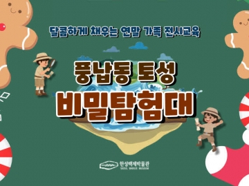 서울시 한성백제박물관(관장 김지연)이 연말을 맞아 가족이 함께 참여할 수 있는 특별 교육 프로그램 ‘풍납동 토성 비밀 탐험대’를 오는 12월 9일부터 12일까지 운영한다. 이번 프로그램은 박물관이 올해 선보인 선사·고대 기획전 ‘을축년 대홍수가 알려준 풍납동 토성의 비밀’과 연계해 어린이와 가족이 한성백제의 역사를 더욱 쉽게 이해할 수 있도록 기획됐다.