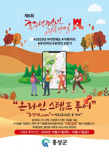 홍성군은 코로나19 예방을 위해 온라인 인증 방식으로 ‘제6회 홍주성천년여행길 걷기행사’를 개최(10월 1일 ~ 31일, 1달간)한다고 밝혔다.