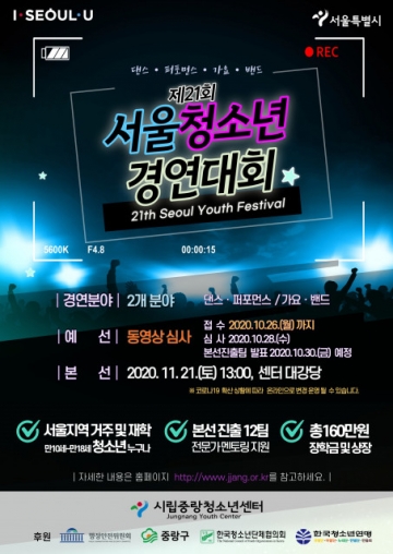 시립중랑청소년센터(관장 박충서)는 제21회 서울청소년경연대회를 개최한다고 밝혔다.