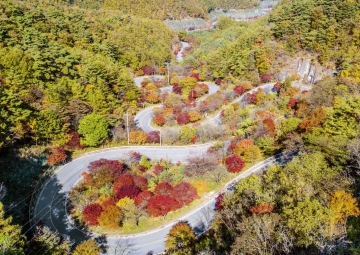 전망대에서 내려 보는 풍경은 구불구불 도로가 마치 오색단풍 속에 숨어 뱀이 똬리를 튼 듯 보이며, 그 절경이 한 폭의 그림 같아 탄식이 나올 정도다.