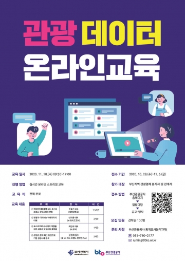 부산광역시와 부산관광공사(사장 정희준)는 관광 업계 종사자 및 관계자들을 대상으로 관광 데이터 온라인 무료 교육을 실시한다고 28일 밝혔다.