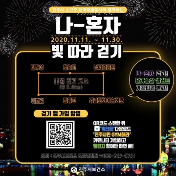 진주시 보건소는 걷기 앱(Walk On)을 활용한 비대면 커뮤니티인 ‘진주시민 GYM해라’에서 오는 11일부터 “나-혼자 빛 따라 걷기” 챌린지를 운영한다.
