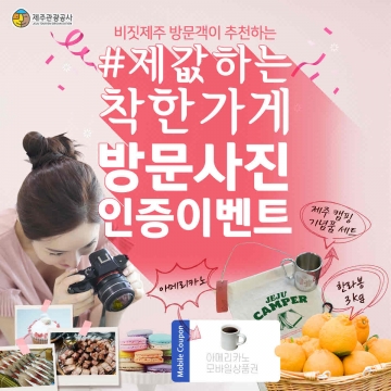 공사는 전체 응모자 중 추첨을 통해 총 60명에게 소정의 경품을 증정할 예정이며, 비짓제주 #제값하는 착한가게 테마 콘텐츠에 소개된 업체 20곳 중 한 곳이라도 인증사진을 남기면 참여자 모두에게 커피 모바일 쿠폰을 제공할 계획이다.