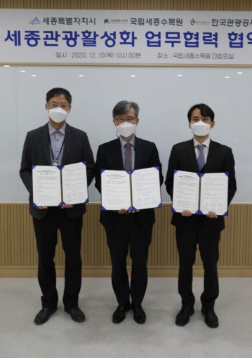 이날 협약식은 코로나19 확산을 방지하기 위해 간소화해 진행됐으며, 김성수 시 문화체육관광국장, 조남성 국립세종수목원 운영지원부장, 윤승환 한국관광공사 세종충북지사장 등 약 10명이 참석했다.