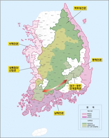 * 6개권역 : 동해안권, 남해안권, 서해안권, 백두대간권, 내륙첨단산업권, 대구-광주연계협력권