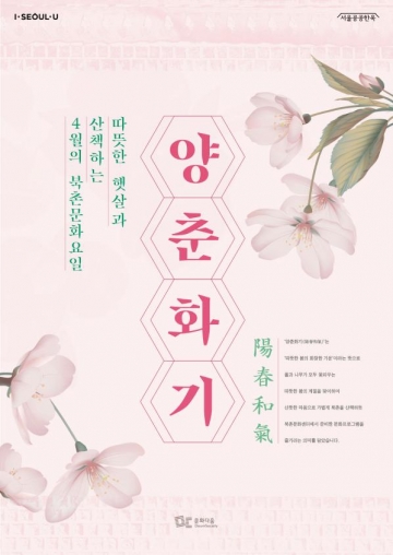서울시 북촌문화센터는 ‘양춘화기(陽春和氣)-따뜻한 봄의 화창한 기운’을 주제로 4월의 토요 문화행사 ‘북촌문화요일’을 운영한다.