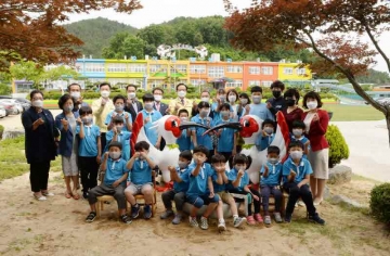 창녕군(군수 한정우)은 자라나는 미래세대의 따오기 보전과 보호 노력에 대한 조기교육을 위해 지난해 따오기 학교로 선포한 창녕 유어초등학교에 26일 따오기 조형물을 기증했다.