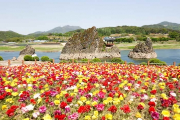 관광1번지 단양군이 단양팔경(丹陽八景) 중 제1경인 단양 도담삼봉 일원에 2만송이 백일홍과 석죽을 식재해 코로나19로 지친 방문객들에게 아름다운 볼거리와 심리적 안정감을 제공하고 있다.