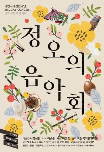 ‘정오의 음악회’는 다채로운 음악을 국악관현악으로 만나볼 수 있는 국립극장 대표 상설공연이다. 국악에 익숙하지 않은 관객도 누구나 쉽게 즐길 수 있도록 연주마다 쉽고 친절한 해설이 함께하는 공연으로 2009년부터 꾸준히 관객의 사랑을 받아왔다. 2021년 상반기에는 아나운서 이금희가 해설을 맡아 특유의 부드럽고 편안한 진행으로 관객들의 이해를 돕고, 국립국악관현악단 부지휘자 이승훤이 지휘를 맡는다.