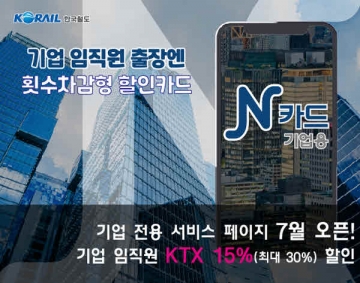 한국철도(코레일)가 코로나19 장기화로 어려움을 겪고 있는 기업과 상생협력하기 위해 업무상 KTX를 이용하는 직장인을 위한 횟수 차감형 할인카드인 ‘N카드(기업용)’를 7월 1일 출시한다.