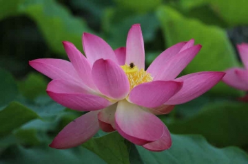 꽃망울을 터뜨리고 활짝 피어난 연꽃이 아름다운 자태를 뽐내고 있다.