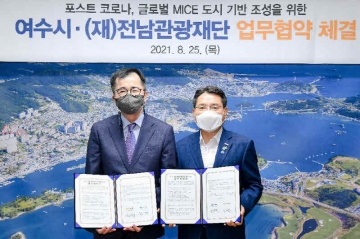 여수시는 25일 시장실에서 (재)전남관광재단과 글로벌 MICE 도시 기반 조성을 위한 업무협약을 체결했다.
