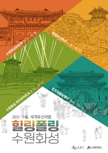 10월 2일에는 문화재청 공모 선정사업인 ‘2021 세계유산축전 수원화성’이 시작된다. ‘수원화성, 의궤가 살아있다’를 주제로 10월 24일까지 열리는 세계유산축전 수원화성은 수원화성과 기록유산인 의궤(儀軌)를 활용해 수원화성의 가치를 알리는 프로그램으로 구성된다.