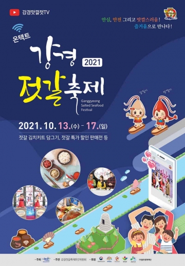 오는 13일부터 17일까지 5일 간 개최되는 2021 강경젓갈축제는 유튜브 채널 ‘강경맛깔젓TV’에서 온라인으로 진행되며, 강경젓갈시장에는 야간 경관을 조성해 강경을 찾는 관람객들에 아름다운 추억을 선사할 예정이다.