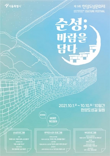올해로 9회째를 맞이하는 한양도성문화제가 ‘순성, 바람을 담다’라는 주제로 10월1일부터 10월10일까지 온라인 누리집(hanyangdoseong.com)과 한양도성 유적전시관에서 비대면으로 개최된다.
