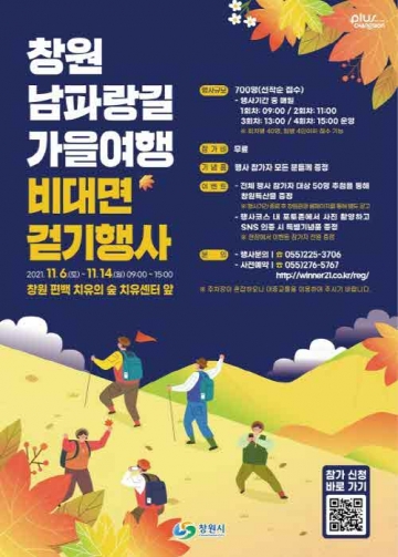 창원시(시장 허성무)는 오는 6일부터 14일까지 진해구 창원 편백 치유의 숲 치유센터에서 ‘창원 남파랑길 가을여행 비대면 걷기행사’를 개최한다고 1일 밝혔다.