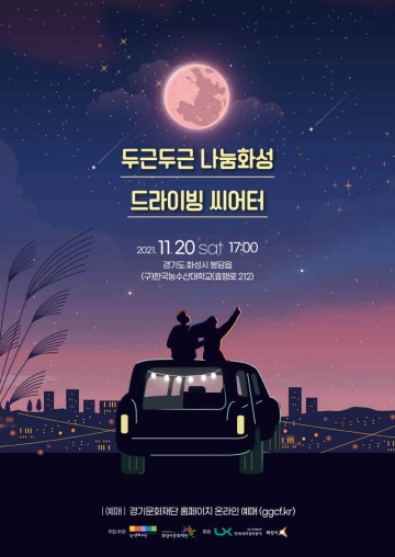 ‘두근두근 나눔화성, 드라이빙 씨어터’는 위드 코로나 시대를 맞이해 그동안 강도 높은 사회적 거리두기로 문화예술을 향유할 기회가 적었던 도민들을 위하여 화성시문화재단과 경기문화재단이 공동으로 주최하고, 화성시와 한국국토정보공사(경기지역본부)가 후원하는 비대면 드라이브-인 공연이다.