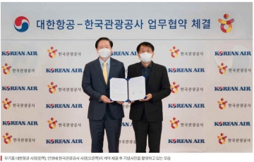 대한항공과 한국관광공사가 우리나라 관광사업 발전을 위해 손을 잡았다.