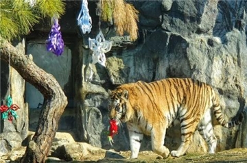 맹수사에서는 양말 모양의 선물주머니에 닭고기 등 호랑이들이 좋아하는 먹이를 넣고 나무에 매달아 시베리아호랑이들의 행동풍부화를 유도했다. 각종 채소와 과일로 만든 트리와 케이크를 선물 받은 아시아코끼리는 바로 케이크를 한 발로 부수고 안에 든 바나나와 트리까지 맛있게 먹어치웠다는 후문이다. 한규영 사육사는 “겨울철에는 코끼리가 코를 활용하는 빈도수가 다소 적어지기 때문에 코끼리가 좋아하는 과일로 만든 크리스마스 트리를 문에 만들고 먹이를 높은 곳에 매달아 코 근육의 사용을 유도했다”라고 설명했다.